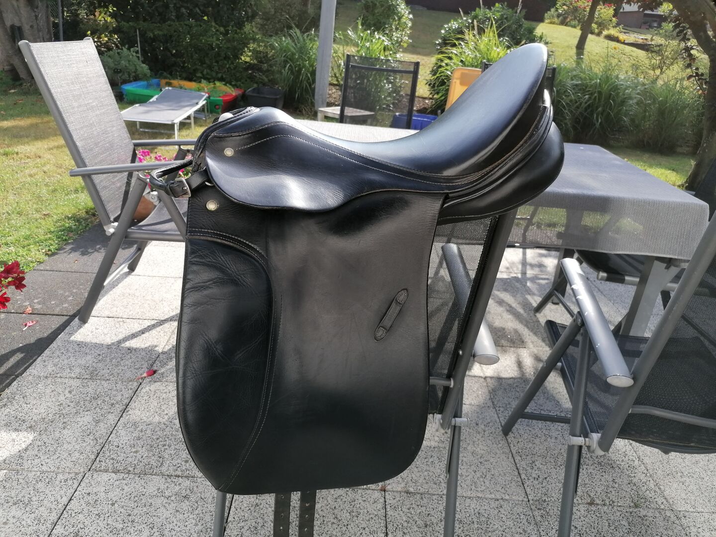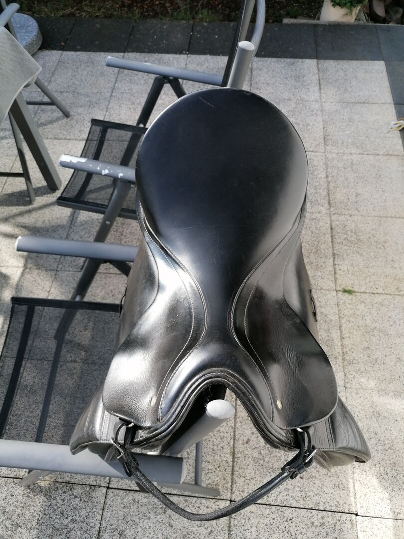 Hier verkaufe ich unseren geliebten Passier u. Sohn Sattel, Lenox 17, in schwarz, alle Strippen und Nähte sind top in Ordnung und wurde vom Sattler alle 8 Monate überprüft. Kammerweite 18 cm Sitz Länge 40 cm. top in Ordnung schön gepflegt siehe Bilder. Der Sattel lag auf einem Großpferd mit hohem Widerrist. Habe festgestellt dass er doch für viele verschiedene Pferde passt. Durch seine tolle Polsterung liegt er schön am Pferd an, die Sitzlänge ist schön für Jugendliche und Erwachsene geeignet. Sattel wird verkauft wegen Regenbogen Pferd. Hängt jetzt eine Weile im Schrank, ist echt zu Schade um nur in der Sattelkammer hängen zu lassen. Da es sich um ein Privatverkauft handelt, keine Rücknahme und keine Reklamation. Habe noch die Steigbügelriemen und