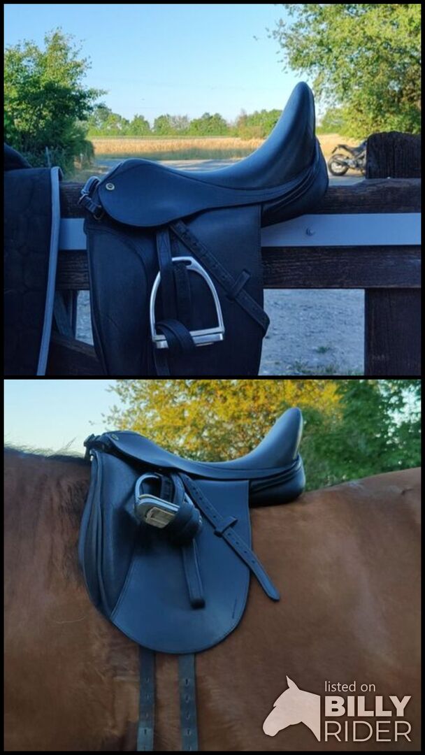Der Sattel ist in einem guten Zustand. Er hat leichte Gebrauchsspuren welche allerdings nicht stören. Er passt gut auf Pferde mit einer breiten Schulter da er vorne weit geschnitten ist und dazu ist er auch sehr kurz und dementsprechend für Pferde mit kurzem Rücken gut geeignet. Ich sende gerne noch weitere Bilder zu.