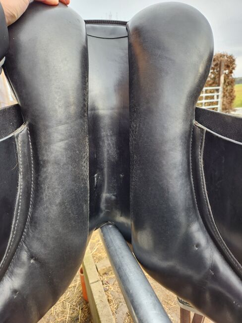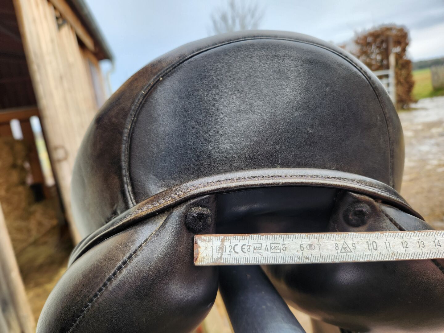 Der Sattel wurde einmal komplett neu gepolstert, sodass die Füllung weich und gleichmäßig ist. Zudem wurde er vor ein paar Jahren vom Sattler fachgerecht ein wenig schmaler gestellt, um die Passform zu optimieren. Da das Modell über ein kalt verstellbares Kopfeisen verfügt, lässt er sich auch in Zukunft wieder sehr gut an ein neues Pferd anpassen.