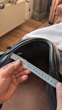 Er ist mittlerweile schon etwas in die Jahre gekommen und die Naht bei der Sitzfläche ist leicht kaputt, aber sonst ist der Sattel noch total in Ordnung. Er lag jahrelang auf einem Lipizzaner und am Ende auf einer Haflingerstute.