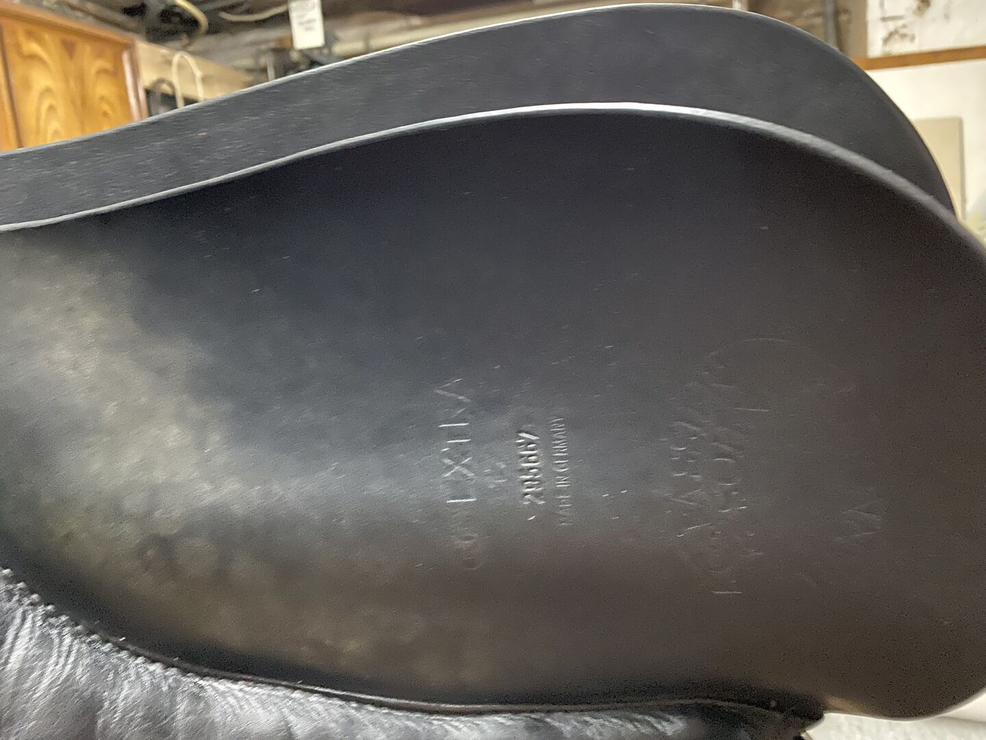 Sehr gut erhaltener Dressursattel. Leider hing der Sattel eine Weile nur im Schrank und wurde im Leder auf der Unterseite etwas fleckig. Das Kopfeisen ist änderbar. Wie auf dem letzten Foto zu sehen ist, ist die Naht an der Pausche links unter dem Sattelblatt nicht mehr ganz so schön, kann aber vom Sattler leicht wieder nachgezogen werden (Schönheitfehler).