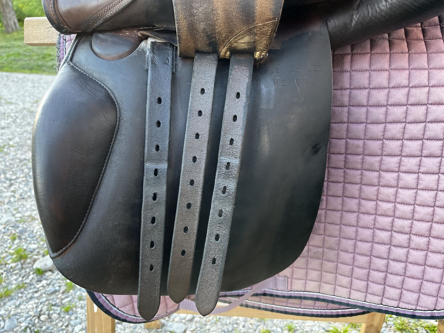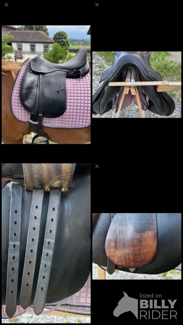 Verkaufe Dressursattel La Belle Wurde von Vorbesitzer schwarz eingefärbt Sehr schöner bequemer Sattel Wurde von Sattlerin kontrolliert und geweitet auf oben genannte grösse.
