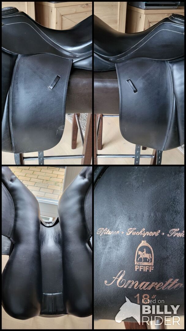 Das Sattelmodell Amaretto von PFIFF ist aus hochwertigem Leder in ausgefeilter Handwerkskunst gefertigt und wird höchsten Qualitätsansprüchen gerecht. Der Sattel ist mit einem begurtetem Flex-Stahlfederbaum ausgestattet, um dem Bewegungsablauf des Pferdes optimalen Spielraum einzuräumen. Vier verschiedene Kammerweiten (I-IV) und eine optimale Auflageeigenschaft des Sattelkissens vereinfachen zudem das Auffinden des perfekt sitzenden Sattels. Die im Sattelbaum versenkten Steigbügelaufhängungen, der tiefe Sitz und die anatomisch geformten Kniepauschen des Amarettos verhelfen dem Reiter zu einer korrekten und komfortablen Sitzposition. Die an den Pauschen und im Sitz zusätzlich eingearbeiteten extra weichen und griffigen Knielagen- sowie Sitzleder gewähren den ultimativen Sitzkomfort im Sattel.