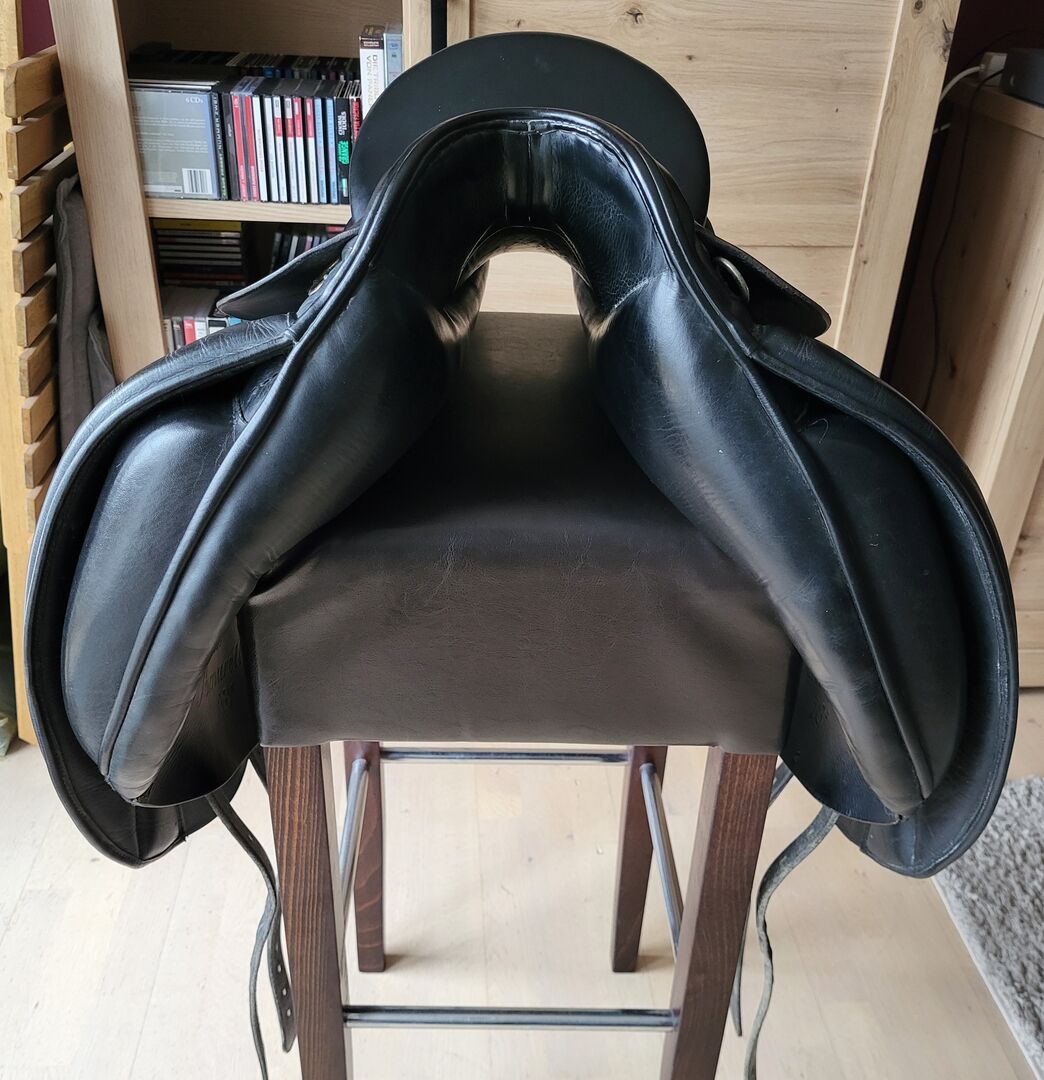 Dressursattel in schwarz in 18" und Kammerweite 2 an. Sehr guter fast neuwertiger Zustand, da kaum genutzt. Passt meinem Jungpferd leider nicht, daher gebe ich ihn schweren Herzens ab.