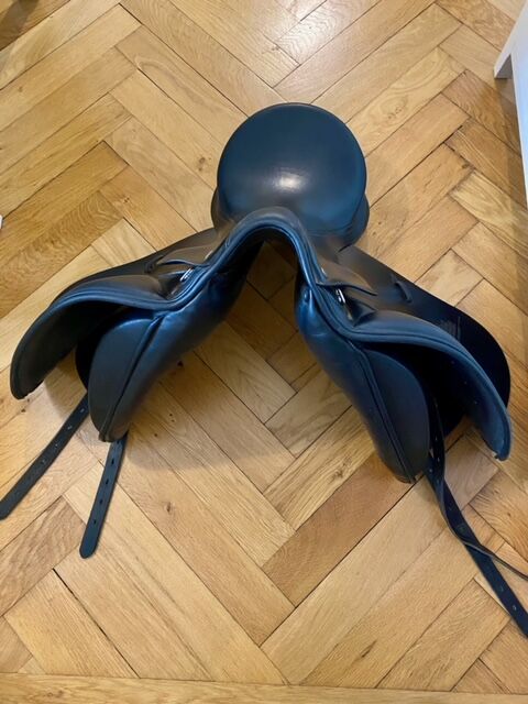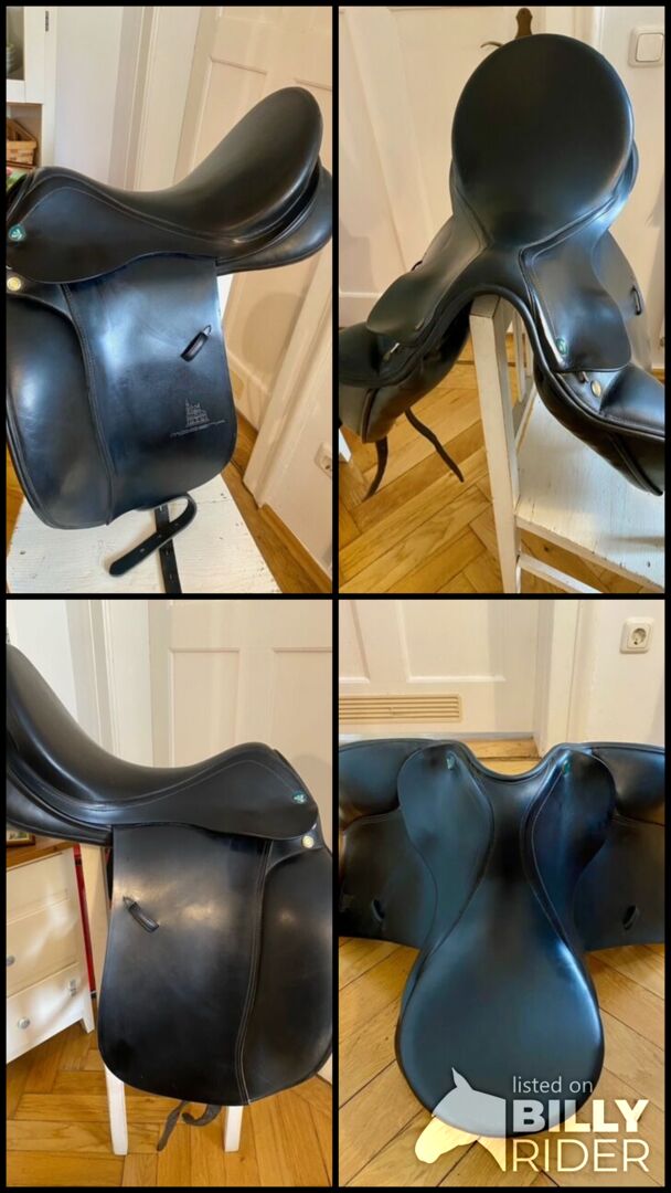 Dressursattel von Prestige Linie MODENA hat einen tiefen Sitz, große Pauschen und ein Keilkissen, das mit thermoaktiver Wolle gefüllt ist.