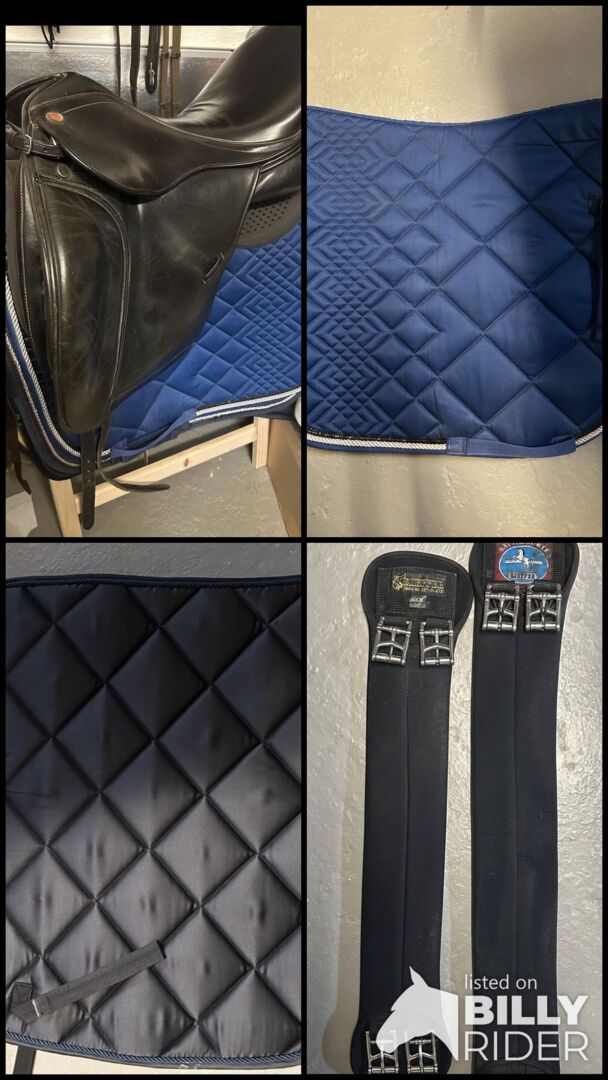 18,5 Zoll + komplettes Zubehör (2× Kieffer Gurt, Schockemöhle, Busse, Gelpad)