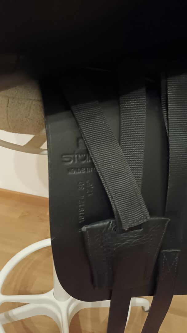 Vor ca. fünf Jahren von Stübben angefertigt, vor drei Jahren von Stübben komplett neu gepolstert, seitdem hängt der Sattel nur rum. Immer trocken und warm aufbewahrt.