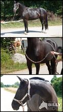 Turn The Tide AM - eine bildschöne, großrahmige Rappstute im modernem Sportpferdetyp und sehr guter Gebäudeaufteilung. Geboren im Mai 2022, präsentiert sie sich aktuell mit einem Stockmaß von ca. 167 cm. Tess besticht nicht nur durch ihre elegante Erscheinung und ausdrucksstarke Farbe, sondern auch durch ein besonders korrektes Fundament und gesunde Voraussetzungen für eine sportliche Karriere. Von klein auf unter besten Bedingungen aufgewachsen, zeigt sie sich im täglichen Umgang ausgesprochen freundlich, menschenbezogen und aufgeschlossen. Sie ist neugierig, verschmust und unkompliziert im Handling - sowohl beim Tierarzt als auch beim Hufschmied. Turn The Tide AM ist vorne beschlagen, regelmäßig geimpft und entwurmt, kennt sowohl Boxenhaltung mit Paddock und Weide als auch das Leben in der Herde und zeigt sich in allen Haltungsformen ausgeglichen und sozial. Charakterlich bringt Tess alles mit, was man sich von einem jungen Pferd wünscht: Sie ist brav, lernwillig und stets aufmerksam bei der Arbeit. Aktuell wird sie schonend angeritten und kennt die Longenarbeit ebenso wie erste Ausritte im Schritt mit einem erfahrenen Pferd an ihrer Seite. Die Stute arbeitet stets motiviert mit und zeigt sich auch im Gelände brav. Ihre hervorragenden Grundgangarten sprechen für sich - besonders ihr klarer, taktsicherer Schritt, ein elastischer Trab mit guter Schulterfreiheit und ein bergauf angelegter Galopp lassen auf ein hohes Dressurpotenzial schließen. Auch die Abstammung unterstreicht diese Einschätzung: Sie stammt aus einer leistungsgeprüften Linie, die auf Talent, Rittigkeit und sportliche Eignung ausgerichtet ist (Topas v.Totilas x Donnerhall). Die Kombination aus Veranlagung und Charakter macht sie zu einer vielversprechenden Nachwuchsstute für den Dressursport.