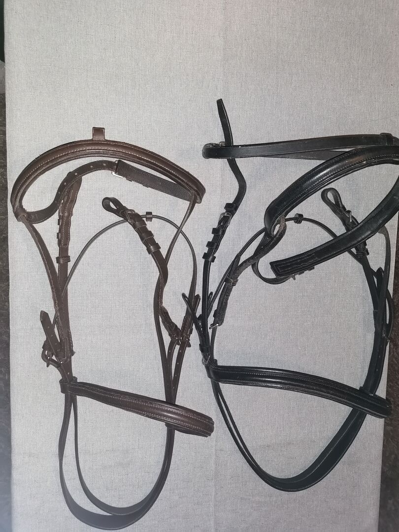Die braune (kleinere) groesse cob. Die schwarze groesse warmblut. Braune Trense 7 Euro, schwarze Trense 10 Euro.