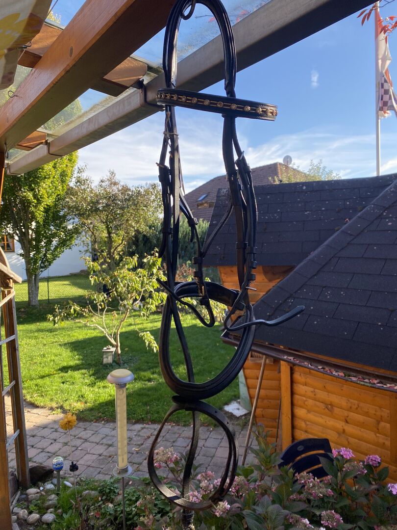 Meine geliebte und gern genutzte Englische Trense in der Größe Warmblut muss ich leider wegen einem Überfluss an Trensen hergeben. Sie hat zwar Gebrauchs, is aber angenehm zu benutzen und mit schönem weichen Leder.