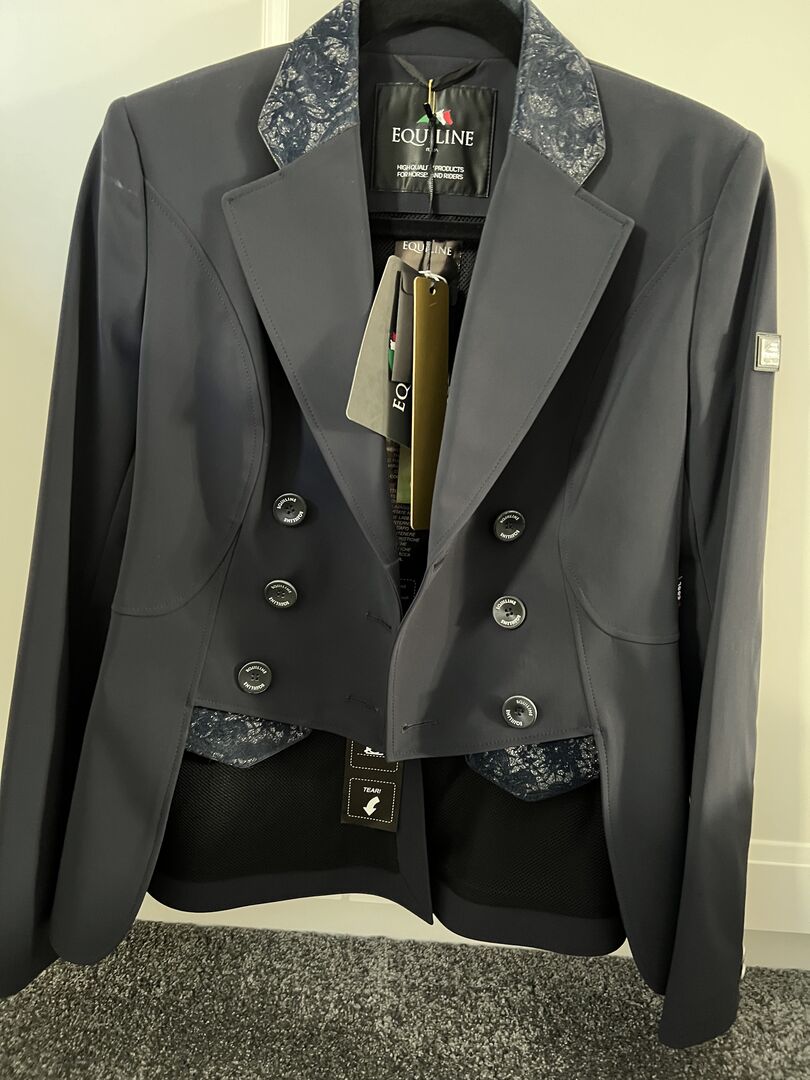 Neuer wunderschöner Blauer Kurzfrack mit Silberdetails. Noch nie getragen mit Original Etikett NP lag bei 550 Euro. Wegen Turnieraufgabe zu verkaufen.