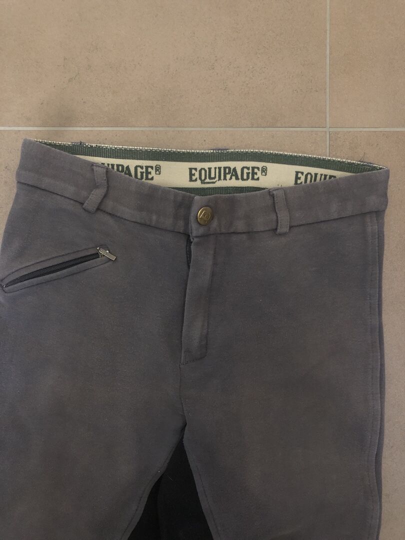 Hiermit biete ich meine erste Reithose der Marke Equipage Farbe Grau mit Schwarzem Vollbesatz, ein Problem ist das in der Hose keine Größe drin steht, ich vermute eine 34-36 Sicher bin ich mir aber nicht. Sie hat keinen Knie oder Vollgrip.