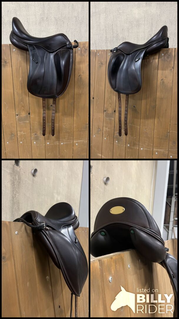 Equipe Glamour Dressur-Sattel - ein Equipe Glamor 17' Dressursattel in gutem Zustand. Schöne dunkle Schokolade Hautton, manchmal sieht es aus wie schwarz (schwer, in einem Foto zu erfassen). E-Carbon für die neueste Linie von Equipe Sätteln - der Sattel war noch nie so flexibel. Sättel aus Kohlefaser sind eine Gefahr für die Gesundheit von Pferd und Reiter. Einscheibig mit schmaler Wendung.