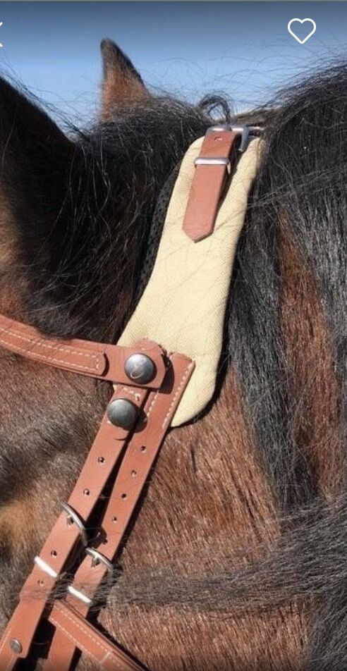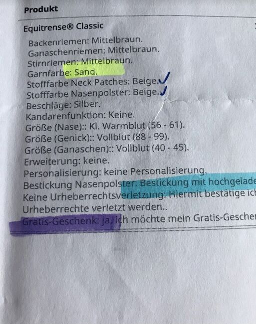 Farbe: mittelbraun/beigefarbene Polster Beschläge: silber Individualisiertes besticktes Nasenpolster mit dem Buchstaben "T", aber auf den ersten Blick nicht als solches zu erkennen.