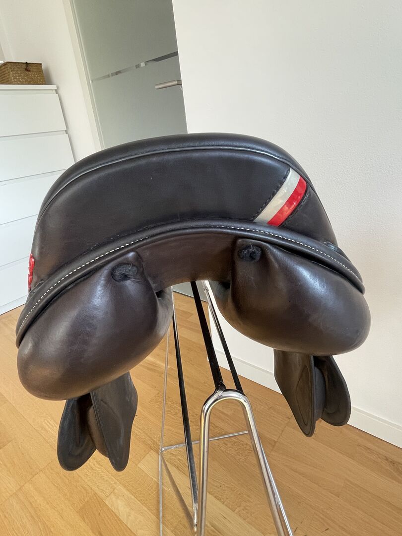 Schweren Herzens verkaufen wir unseren sehr wenig benutzten Springsattel GTD in dunkelbraun. Wir haben ihn im März diesen Jahres vom Sattler gekauft. Leider lief unser Pferd damit von mal zu mal schlechter, daher sehr wenig ( max 20 Mal) genutzt. Der Sattel hat 17 Zoll und eine 33er Kammerweite. Er wurde bei konstanter Temperatur im Haus gelagert und hat keine Macken oder sichtbare Gebrauchsspuren. Er hat einen passenden Erreplus Überzug. Neupreis des Sattels liegt bei 4.500 Euro. Zudem verkaufe ich den passenden Sattelgurt in 135 cm Länge. Ebenfalls tadellos und wenig genutzt. Gern gebe ich die Original-Pflegeprodukte dazu. Ggf könnte ich auch die passenden Bügelriemen abgeben. Ich würde den Sattel ungern versenden - daher nur Abholung im Raum Bielefeld bzw Treffen im Umkreis von Bielefeld, Köln, Düsseldorf, Venlo …