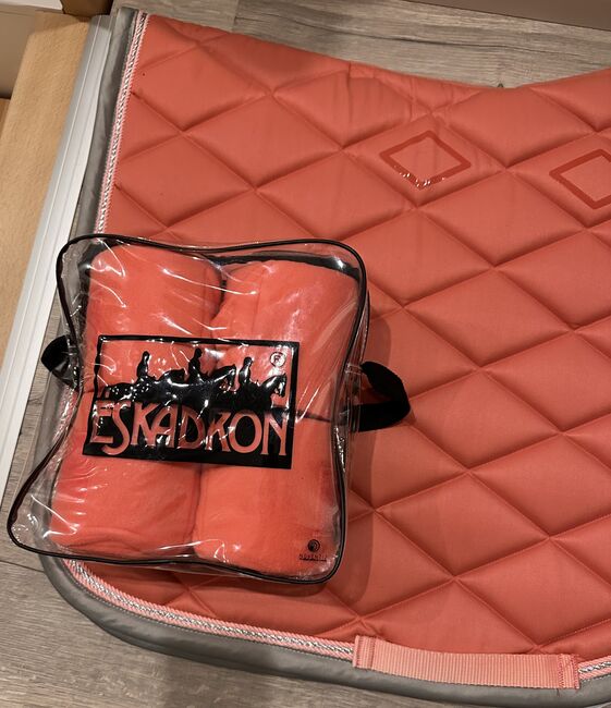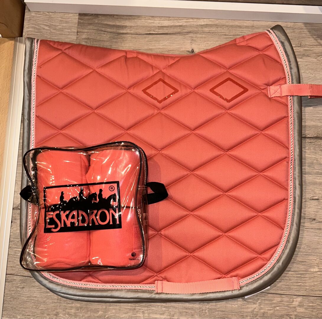 ✨Busse Dressur-Schabracke und passende Eskadron Bandagen und Fliegenhaube (1:1 dieselbe Farbe) ✨Auch einzelnd erhältlich (auf Anfrage) ✨Farbe Rosa/Koralle ✨Alles komplett neu und nie benutzt, Schabracke mit Etikett