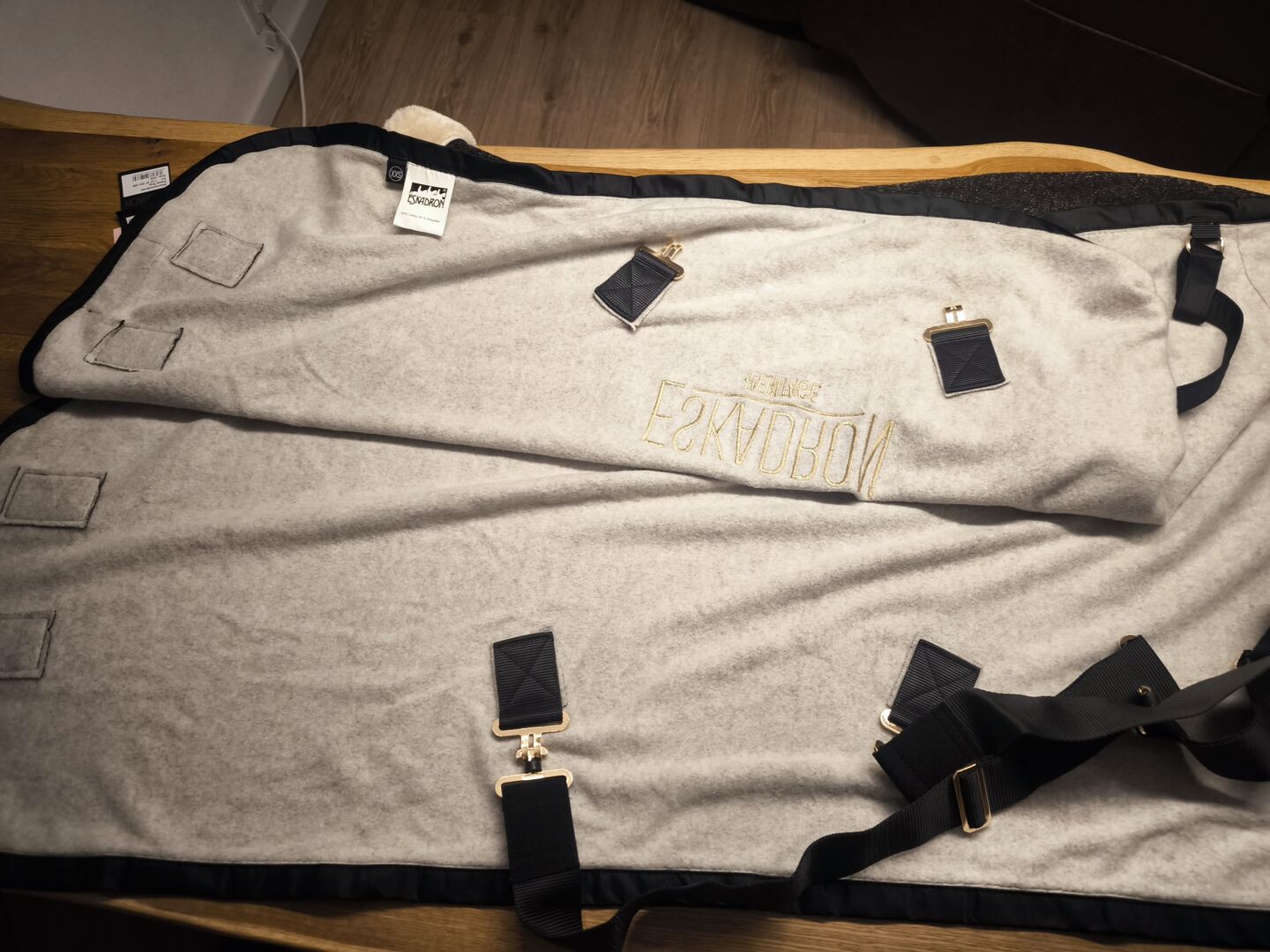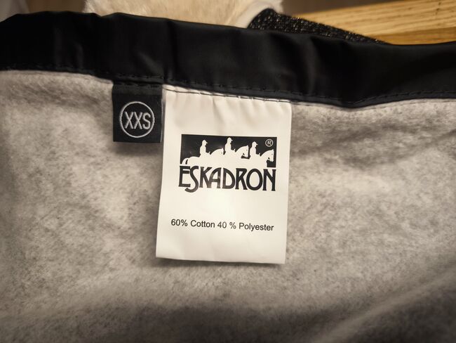 Abschwitzdecke in Größe XXS. Sie ist leider meinem Welsh A an der Brust zu eng. Lag mit zusätzlicher Abschwitzdecke zur Anprobe auf dem Pony.