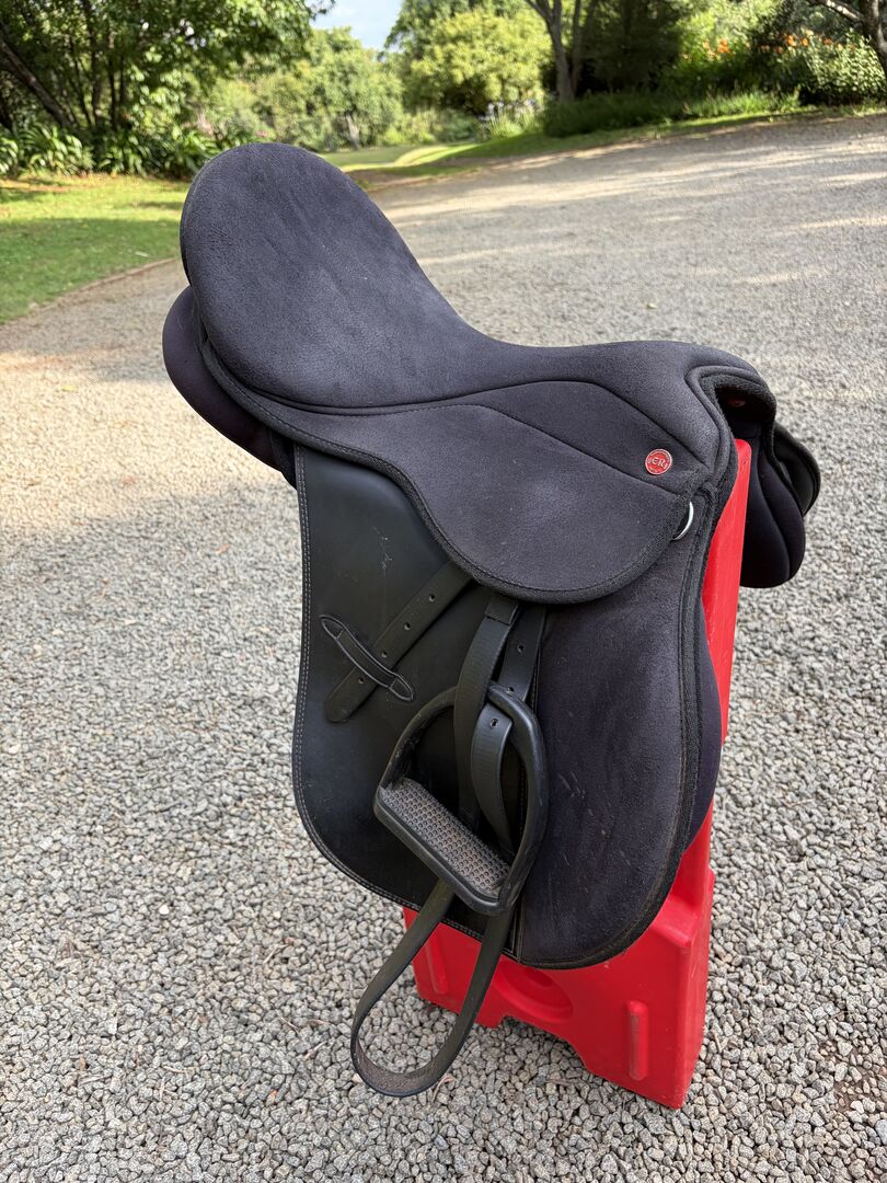 Synthetischer Allzwecksattel in gutem Zustand. Schwarz in Farbe. Derzeit verfügbar in Balgowan/Notties Bereich KZN