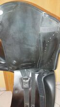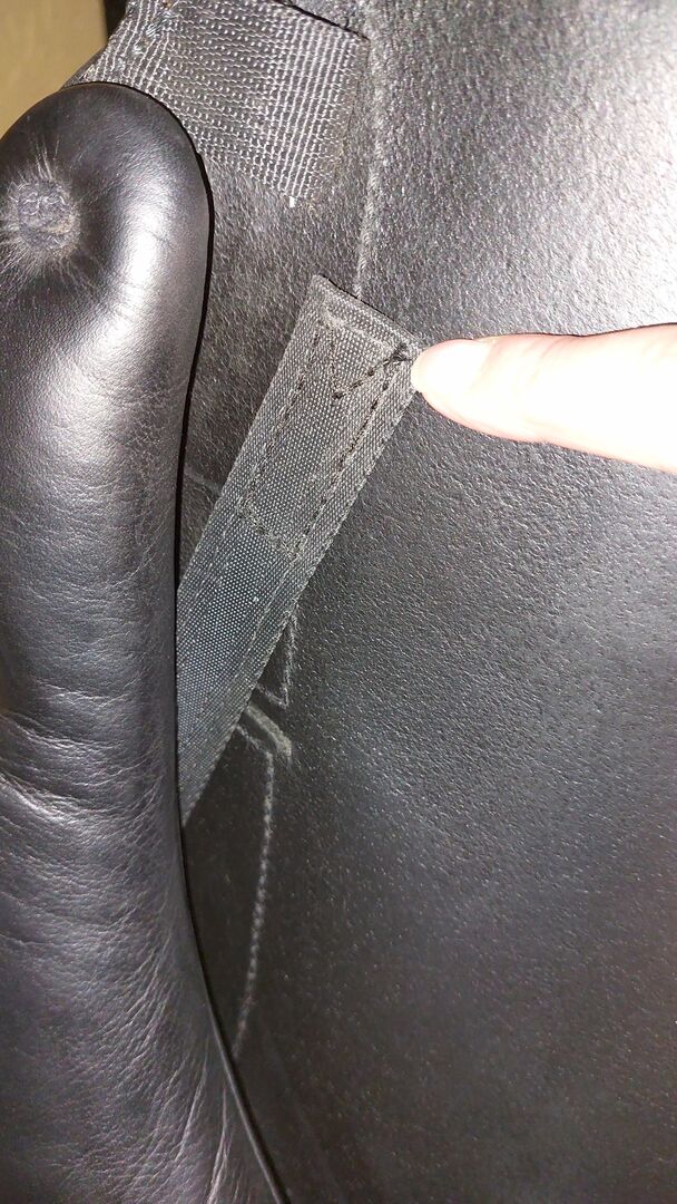 Da die Schulterfreiheit des Sattels bei meinem Pferd später nicht mehr ausreichte, hat der Sattler eine neue Vordergurtstrupfe neben der hinteren Strupfe angebracht. So wurde der Druck des Kopfeisens auf die Schulter und den Trapezmuskel minimiert.