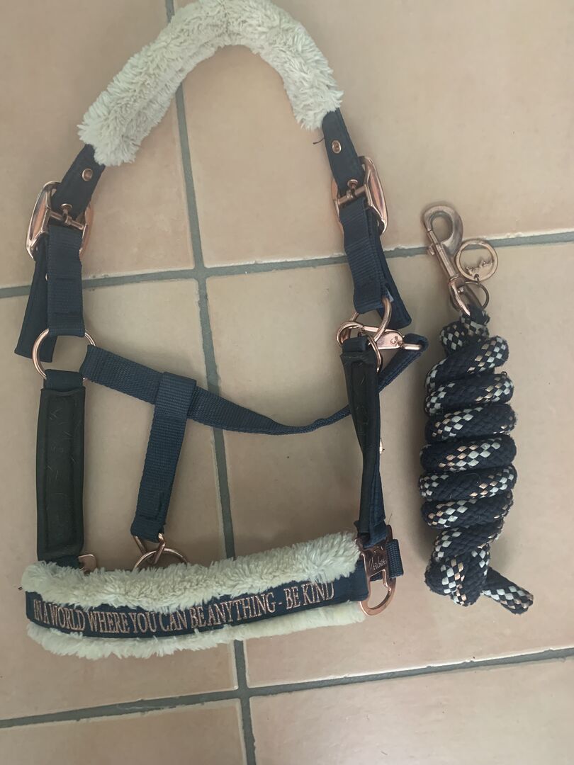 Ich verkaufe ein set „world“ von Felix Bühler in der Farbe Navy/roségold. am liebsten würde ich alles zusammen verkaufen als set und nicht als einzel teile. Einzelteile wäre aber auch möglich. Preise und Grössen für die jeweiligen Artikel: - Schabracke: DR; 45€ - Gamaschen: Pony; 10€ - Halfter und Strick: Pony: 15(Halfter) + 5(Strick)€ - Fliegenhaube: Pony; 10€