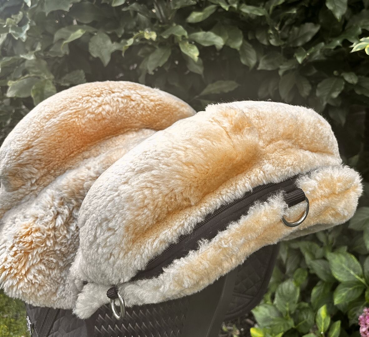 Engel Lammfellsattel mit abnehmbarem Sitzfellbereich und Einschubtasche für Polstermaterial. Der Engel Lammfellsattel besteht aus strapazierfähigem Baumwollsteppstoff und dichtem australischen Merino-Lammfell.