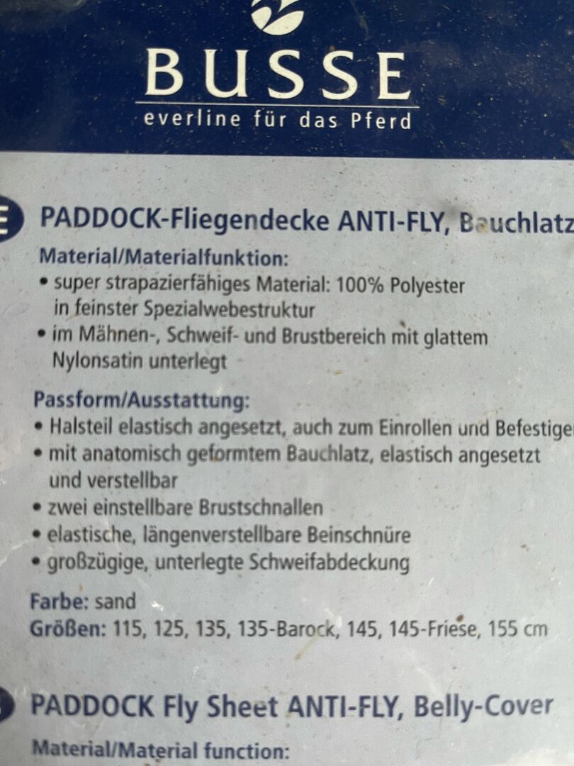 Fliegendecke 165 (Busse Padock Fliegendecke mit Bauchlatz)