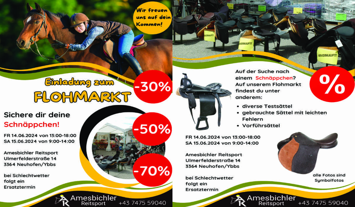 Wir laden Euch zu unserem Reitsport Flohmarkt ein.