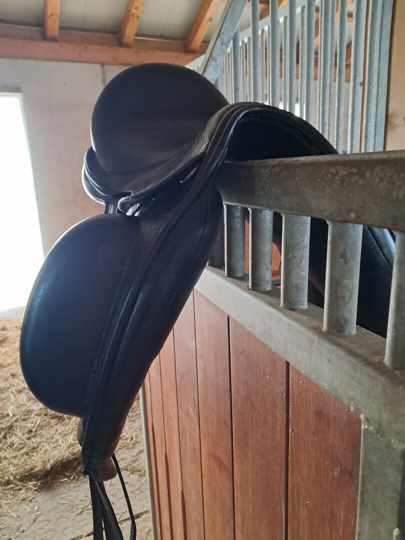 Verkaufe sehr schönen Dressursattel der Marke Frank Baines. Modell Operetta. 18 Zoll und die Kammer lässt sich kalt verstellen. Monoblatt Sattel mit aufgesetzten Pauschen. Der Sattel eignet sich für Pferde mit ausgeprägter Schulterpartie.