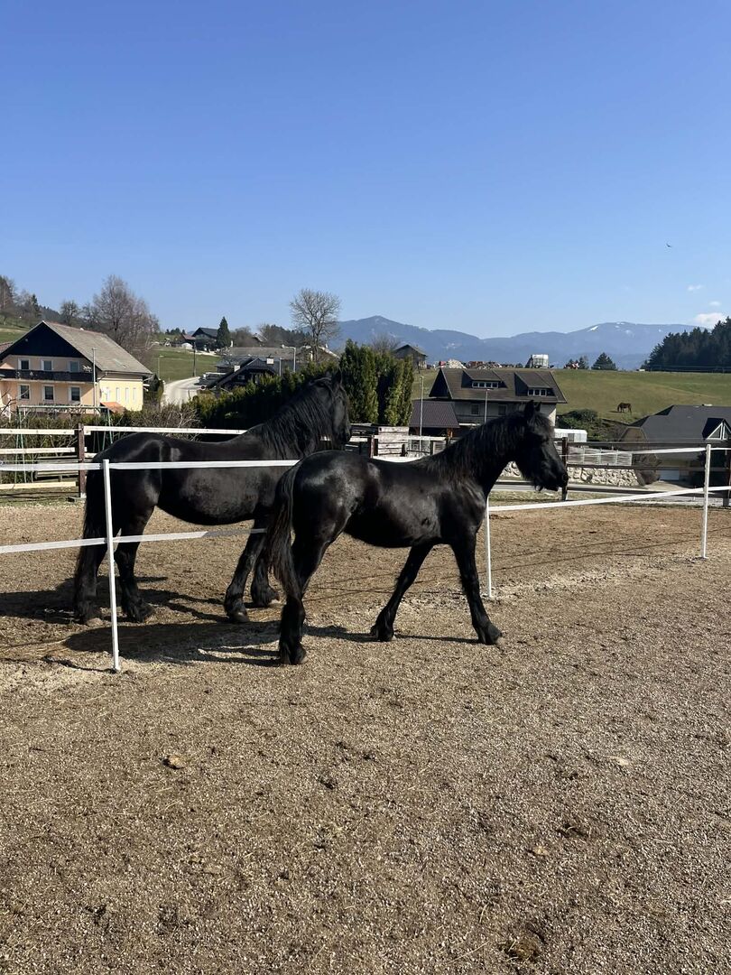 Friesischer Junghengst (1 Jahr) – sehr brav, gute Abstammung Zum Verkauf steht ein einjähriger Friesischer Junghengst (unkastriert) mit sehr gutem Charakter und viel Potenzial für Freizeit, Sport oder Zucht. Der Hengst ist sehr ruhig, menschenbezogen und lernwillig. Er kennt bereits die Grundlagen im Umgang, ist brav beim Führen und zeigt ein ausgeglichenes Temperament. Ein sehr typvoller junger Friese mit schöner Ausstrahlung. Abstammung: Vater: Elvis (Friese, Studbookklasse BBII VB H) Mutter: Wietske – schwarze Friesische Stute Weitere Daten: Rasse: Friesisches Pferd Alter: 1 Jahr Geschlecht: Hengst (nicht kastriert) Farbe: Rappe Standort: Slowenien Der Junghengst eignet sich ideal für jemanden, der einen jungen Friesen mit guter Abstammung und ruhigem Charakter weiter ausbilden möchte. 📞 Weitere Informationen, Fotos und Videos gerne auf Anfrage. 038640342887