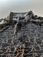 Ich verkaufe ein schwarzes Langarmshirt mit goldfarbenen Pferden. Ich habe es noch nie getragen.