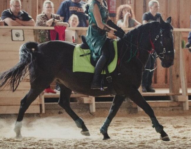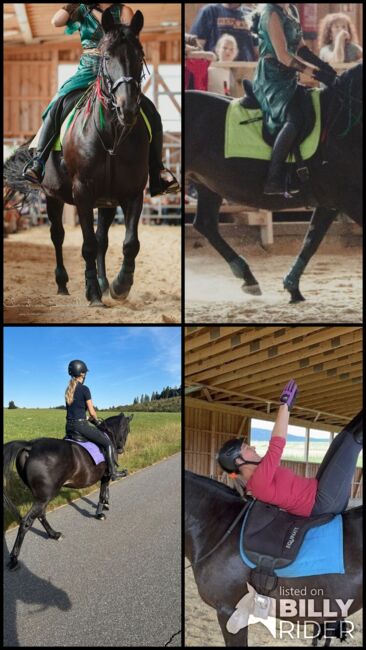 Brave rittige Stute. Macht alles mit. Ob Ausreiten, Show oder andere Sachen, für unsere Ladyee kein Problem, sie ist dabei immer cool. Man kann sie flott oder auch langsam reiten, wie man will. Sehr fein in der Hand. Denken reicht. Auch beim Ausreiten eine Lebensversicherung. Immer brav im Händling. Hänger einsteigen auch kein Thema.