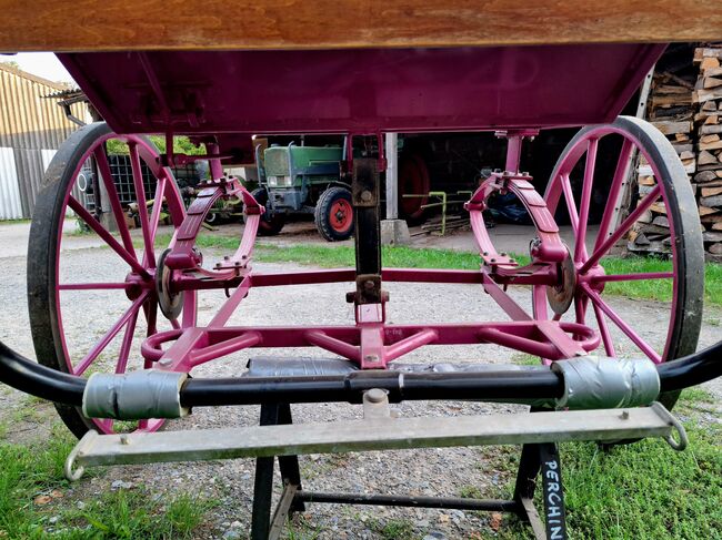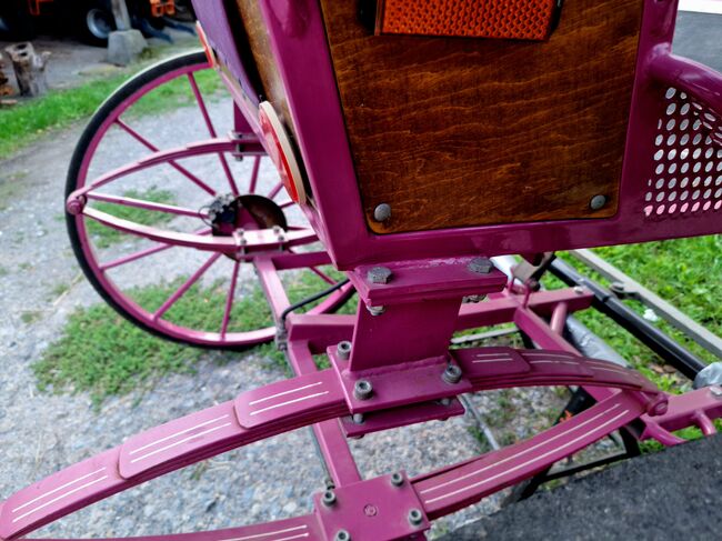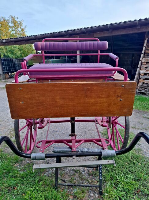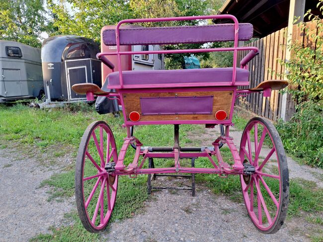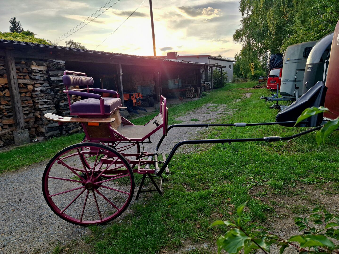Verkaufe meinen gepflegten großen Gig Sulky Kutsche für Pferde. Stand immer trocken und abgedeckt, wurde regelmäßig einschließlich Bremsen gewartet. Ist nie im Regen gefahren worden. Gut gefedert. 90 cm Kutschenräder, Spurweite 1,30 m, mit Scheibenbremse und MZ Bremssättel. Fußbremse und Feststellbremse. Rück-u. Seitenstrahler, Lampenhalter, Peitschenhalterung. Sitzbreite 1 m, verschiebbar, Sitzhöhe 1,20 m. Holzteile farblos lackiert, Kotflügel für Spritzschutz. Breite Schere/Landen, in der Länge stufenlos verstellbar, auch für große Pferde breit und schmal. Ortscheit 85 cm. Stockmaß Pferd ab ca. 1,50 bis max. 1,70 m. Sitzbank mit ein kleinem Stauraum. Zwei weitere T-Träger 9cm zum ändern der Sitzhöhe. Passt in einen normalen Pferdeanhänger. Nur Abholung. 1000 € VB. Bei Interesse oder auch Angebot +49 17621110466