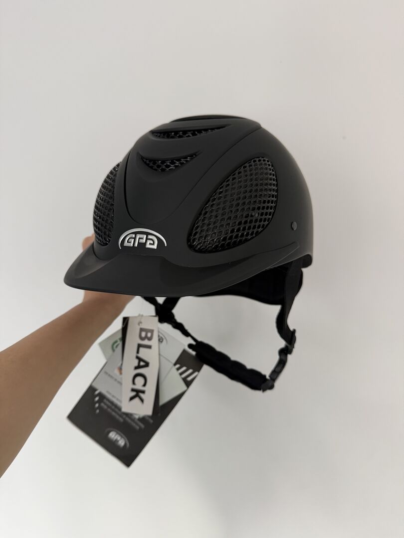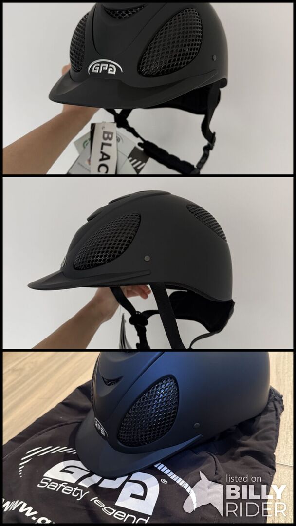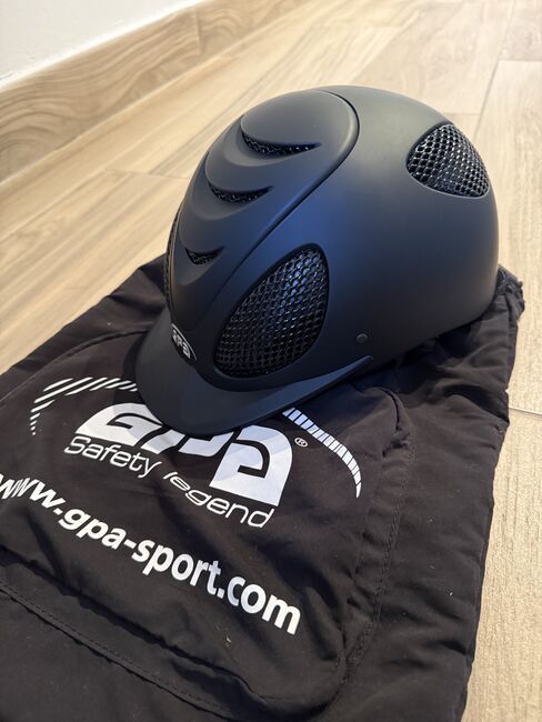Original GPA Reithelm, brandneu und unbenutzt, mit originalen Anhängern und originaler Helmtasche. Nie getragen, nie anprobiert, und nie in einem Sturz oder Aufprall beteiligt.