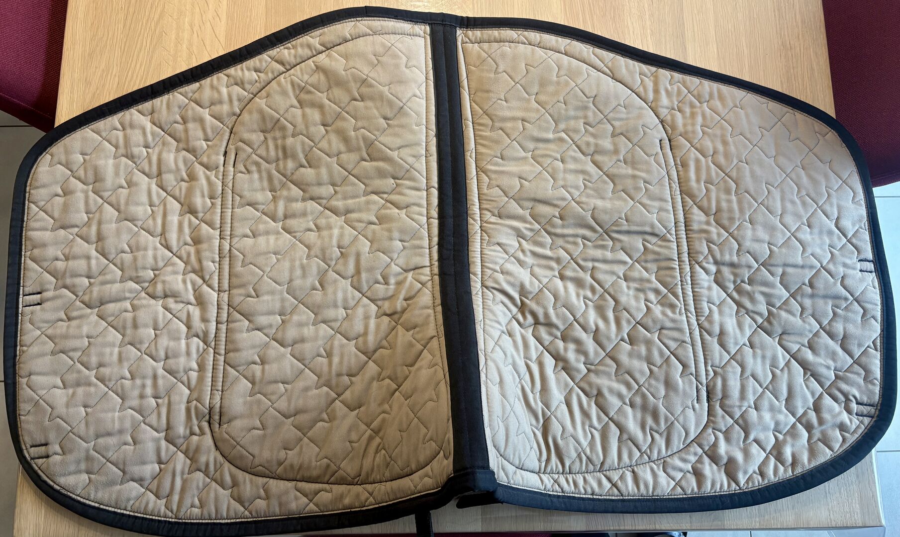 Verkaufe neuwertige Grandeur-Schabracke, war bei mir keine 10x Pferd, leider wurde mir damals ein Sattel verkauft der nicht gepasst hat. Gekauft wurde sie für den Hidalgo-Valencia, passt aber auch unter einen Dressursattel aber leider jetzt nicht mehr unter meinen Barefoot. Da ich mit dem jetztigen Satten sehr zufrieden bin, habe ich mich entschlossen die Schabracke weiterziehen zu lassen, zum Verstauben ist sie zu schade.