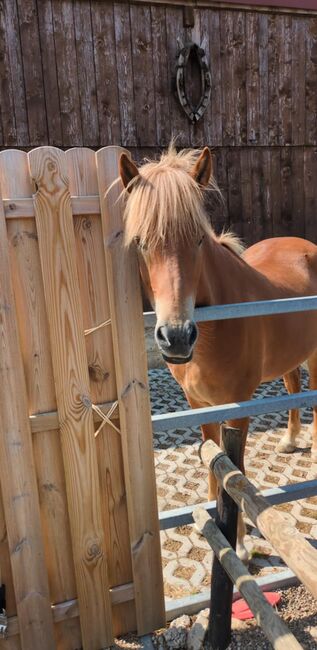 Super lieber Schmuser, sehr groß mit 152 cm, noch im Wachstum! Angeritten, eher ruhiger Typ. Wird auf Platz und Gelände geritten, muß noch einiges lernen. Aber immer lieb und zuverlässig. Ich bin leider zu schwer für ihn. Er lebt im Offenstall und ist gut verträglich mit den anderen Pferden