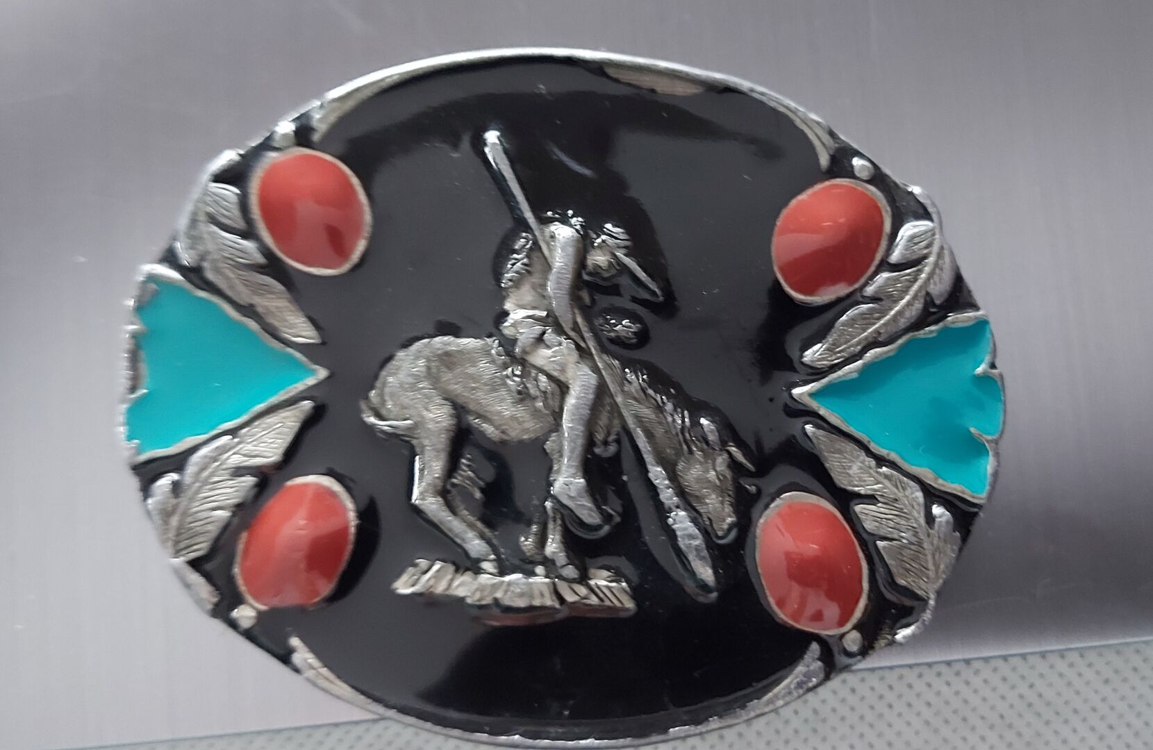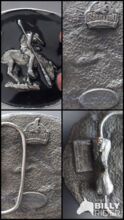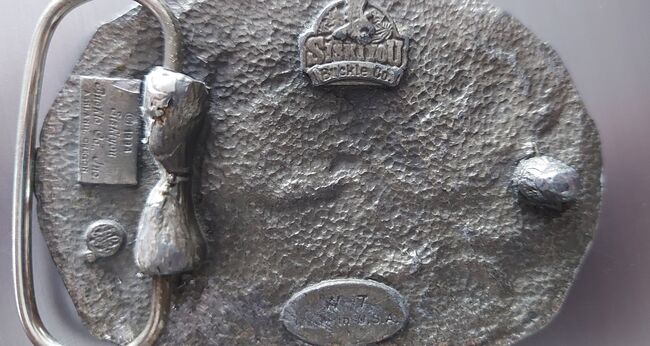 Ich verkaufe ein sehr schönen Buckle End of the trail der Fa. Siskiyou Made in USA 1994 hergestellt. Austauschbar Sie wurde leider schon repariert, an der Gürtelhalterung (siehe letztes Foto, 2 Lötstellen)