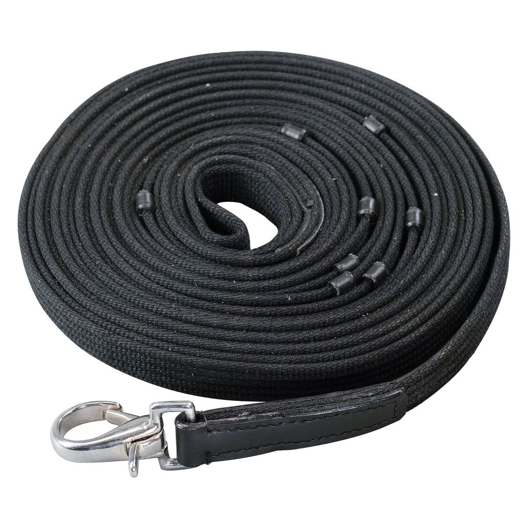 Loesdau Longe, 8 m Die Longe ist aus stabilem Gurtmaterial hergestellt und hält jeder Belastung stand. Mit Handschlaufe und Karabiner. Ohne Wirbel und mit Lederstegen. Material: 80% Polyester, 20% Baumwolle