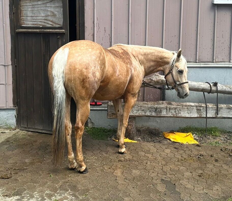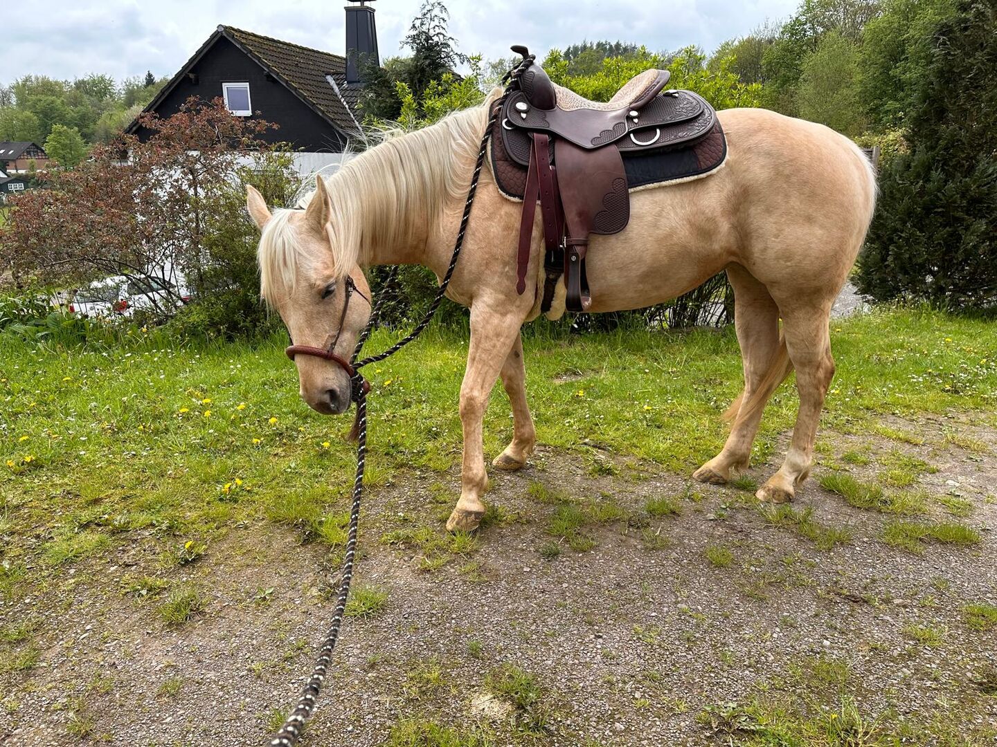 Standort: 57489 Drolshagen Leider muss manchmal die Vernunft siegen und deshalb sucht diese Traumstute ein neues, sehr gutes Zuhause. Goldie ist nicht nur bildhübsch, sondern auch kräftig mit gutem Fundament und sehr lieb und zuverlässig. Sie ist eine 2017 geborene, 150 cm große Quarter Horse Stute. Sie ist gut zu händeln, sehr auf ihren Menschen bezogen und unproblematisch. Goldie ist robust und steht aktuell im Offenstall. 5-Panel n/n. Die Stute besitzt eine sehr gute Ausbildung, kennt alle Reiningmannöver. Diese müssen aber erst wieder aufgefrischt werden, weil mehr an der Basis und Tragkraft gearbeitet wurde. Geht super ins Gelände, dort sicher unterwegs. Gerne flott aber immer kontrolliert. In der Bahn ist sie sehr lieb und zuverlässig aber eher ruhig. Kennt Training und Kurse außerhalb des eigenen Stalles, dabei vollkommen unproblematisch und lieb. Goldie ist sehr begabt in Richtung Trail, Ranch Riding, Ranch Rail und Horsemanship. Alles in guter Qualität zu reiten. Die Stute ist sehr weich zu sitzen und zeigt schöne Bewegungen. Sie wäre ein tolles Pferd für einen ambitionierten Jugendlichen, aber auch als verlässlichen Freizeitpartner ideal. Goldie ist eine Wimpys Little Step Enkelin. Ein passender Westernsattel kann mit erworben werden. Von privat nur in allerbeste Hände abzugeben.