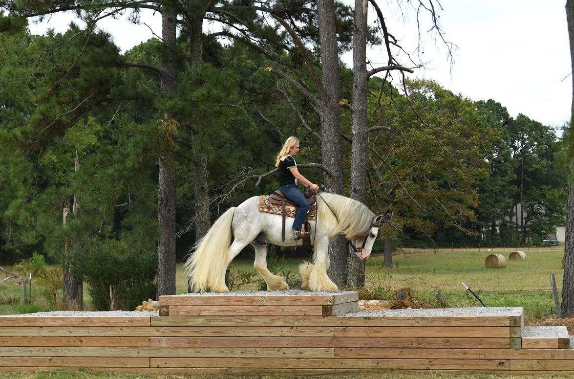 JETZT STOPP!! Wenn Sie auf der Suche nach dem einmaligen Pferd sind, ist Ihre Suche vorbei! Lernen Sie Galloway kennen, unseren einzigartigen grauen Sabino Gypsy Vanner. Galloway ist die Art von Pferd, von der jeder träumt! Er ist sehr gut ausgebildet in der Arena, ein absoluter Traum auf den Wegen, ein praktischer Partner auf der Ranch, sicher für die ganze Familie! Er kommt auf der Weide angerannt, um Sie zu begrüßen, und folgt Ihnen im Stall, um Aufmerksamkeit zu bekommen. Galloway ist immer ein Gentleman in jeder Hinsicht. Er ist derjenige, den Sie einfangen und mit dem Sie jeden Tag ein bisschen Spaß haben wollen. In seiner Gegenwart kann man gar nicht anders, als zu lächeln, denn er hat ein liebes, liebevolles Wesen und eine neugierige Persönlichkeit. Galloway ist an alle Arten von Terrain gewöhnt. Er ist sehr trittsicher auf den Pfaden und lässt sich leicht durch das Gestrüpp und die Bäche manövrieren. Er liebt Wasser und marschiert fröhlich hindurch. Er geht ohne zu zögern dorthin, wohin Sie ihn führen. Er ist mutig, wenn er alleine unterwegs ist, oder er folgt gerne einer Gruppe auf den Pfaden. Er hat schon viele wilde Tiere gesehen, kommt gut mit herumlaufenden Hunden, unausstehlichen Minipferden, Lamas, wehenden Planen, Fahnen und Geländewagen zurecht. Er liebt Spritztouren auf der Straße und ist ein absoluter Spaßvogel, der so einfach zu fahren ist. Galloway ist extrem leichtgängig und angenehm zu fahren. Galloway ist einfach zu manövrieren und für alle Reiterniveaus geeignet. Er ist ein unkompliziertes Pferd, das Sie für längere Zeit aus dem Stall lassen können und das Sie sofort wieder sanft, ruhig und sicher aufsatteln können, so wie Sie es verlassen haben. Keegan ist ein solides und robustes Reittier für einen schüchternen Reiter oder einen, dem es an Selbstvertrauen fehlt. Er lässt sich langsam reiten, ist aber nicht faul, sondern sehr entspannt und leichtfüßig. Alle kleinen Mädchen werden es lieben, sein dickes, langes, wunderschönes Haar zu flechten, und er genießt es wirklich, verwöhnt und geliebt zu werden. Galloway ist eines der erstaunlichsten Pferde, die wir je besitzen durften. Wir haben schon mit vielen Zigeunern gearbeitet, aber Galloway ist eine Klasse für sich. Galloway ist mit seinem makellosen Aussehen und einer Mähne und einem Schweif, die zum Sterben schön sind, kaum aus den Augen zu lassen!