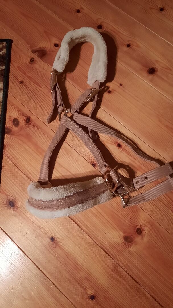 Halfter Metallic Love, Farbe Nude, Beschläge sind rosegoldfarben. 1x getragen Teddyfleece am Genick und Nasenriemen Glitzernde Verzierung auf Genickstück, Nasen und Backenriemen Paypal möglich