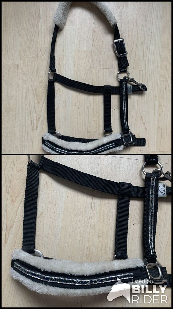 - Kunstfell im Genick und Nasen Bereich, außerdem hat es an den Backenstücken und dem Nasenteil Glitzersteine/Perlen