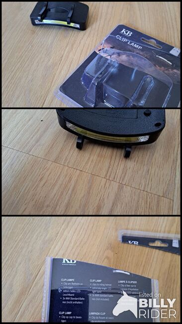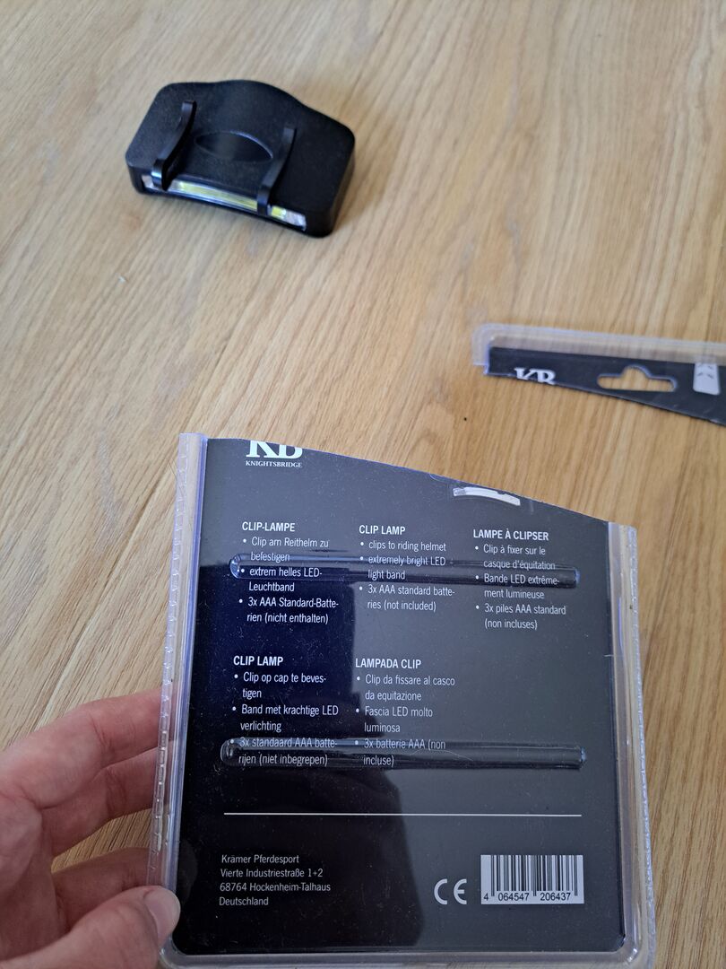 Verkaufe eine unbenutze Helmlampe ohne Batterien. Sie wurde nur ausgepackt um festzustellen, dass sie nicht passt. Man steckt die Lampe unten an die Helmkappe. Vermutlich passt die Helmlampe nur für Reithelme der Marke Knightsbridge.