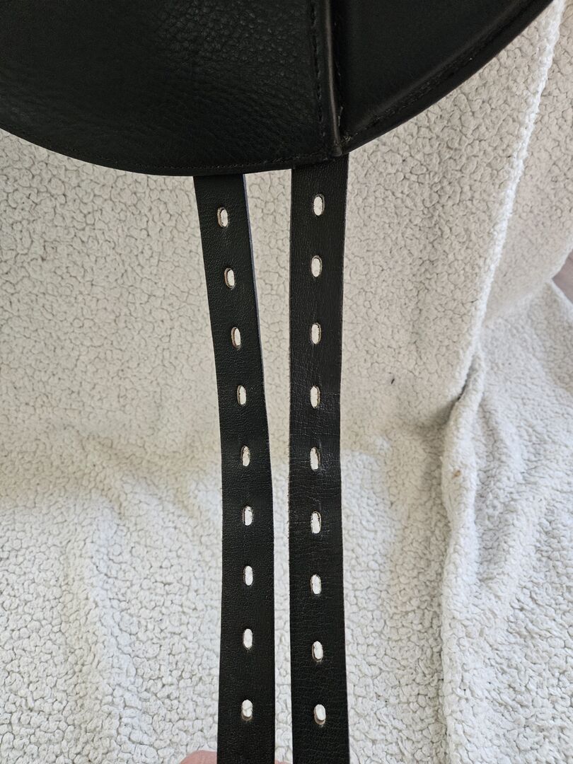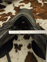 Ursprünglich waren die Sattelblätter kürzer, ich habe sie jedoch vom Sattler gegen längere austauschen lassen. Die Kammerweite beträgt 32 ". Der Sattel lag auf einem Pferd mit mittleren Schwung. Ich habe den Sattel 2021 aufpolstern lassen.