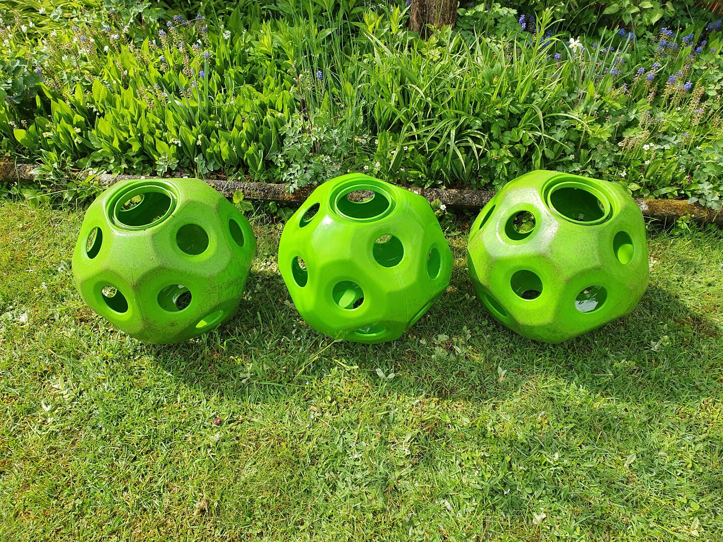 3 Heubälle in grün für Pferde. Wurden nur wenige Monate verwendet. Leichte Gebrauchsspuren, die Schraubdeckel sind leider nicht mehr vorhanden. Preis pro Stück! Nur Selbstabholung.