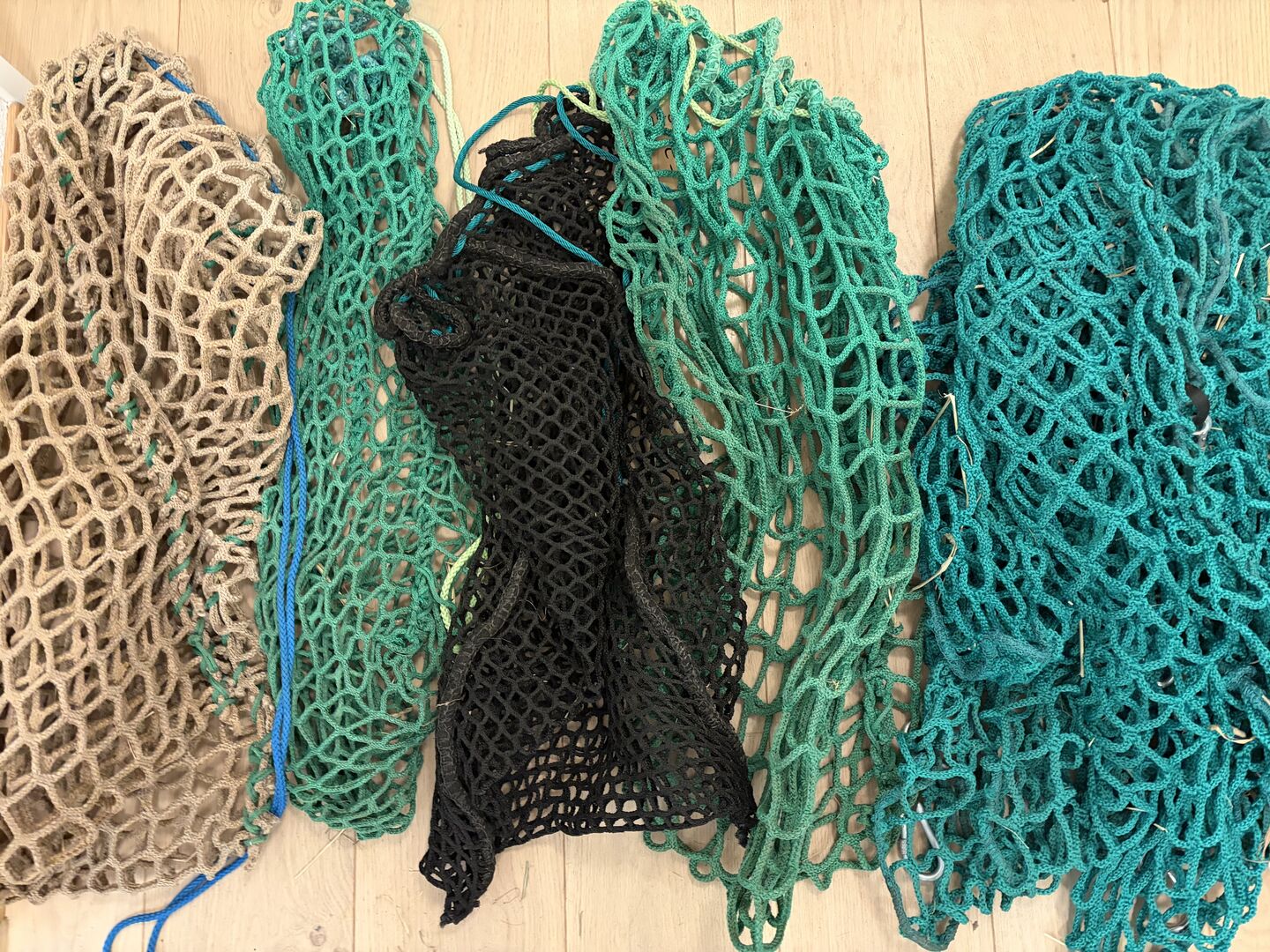 Diverse Netze für Heu/Stroh: 4 einzelne Netze mit unterschiedlichen Lochgrössen sowie 2 grosse Wandnetze für grössere Heu-/Strohmengen.