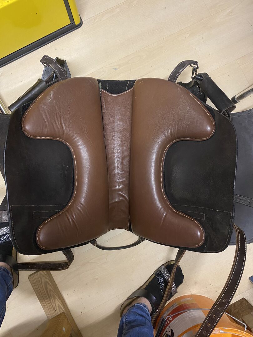 Auflagefläche der Klettkissen ca 48 cm. Sattellänge insgesamt 50 cm.