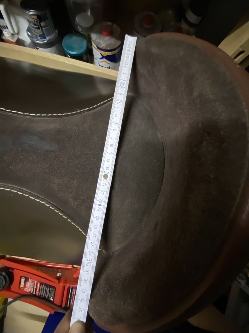 Sattelblatt in der Höhe vertikal gemessen von Mitte Sitzfläche bis Unterrand Sattelblatt 46 cm, Breite Sattelblatt 40 cm (horizontal gemessen).