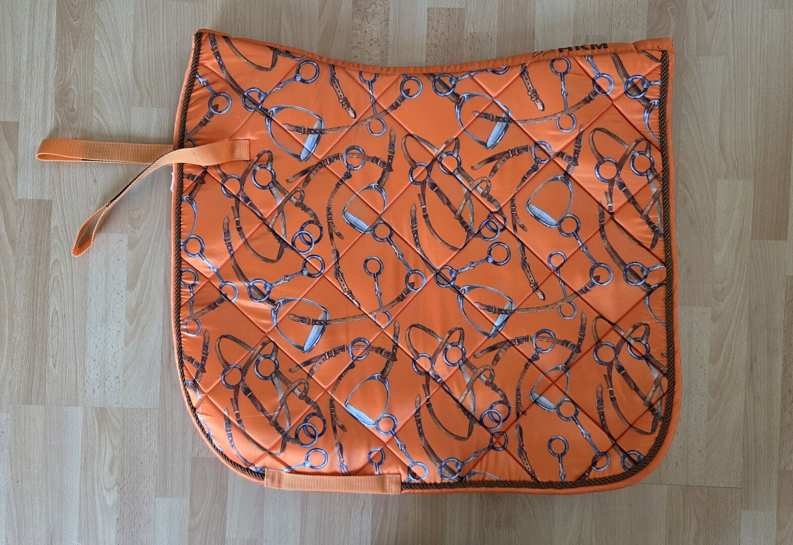 Verkaufe hier die HKM Dressur Schabracke Allure in Orange. Nicht oft auf dem Pferd gewesen und frisch gewaschen. Top Zustand, lediglich zwei kleine Stellen, an denen es wie ein gezogener Faden aussieht (siehe Bilder) – fällt unterm Sattel nicht auf.