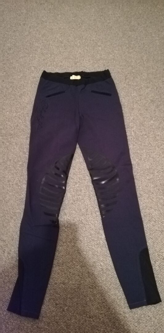 Verkaufe dunkelblaue HKM Starlight Reithose in größe 36 mit Silikon-Kniebesatz.