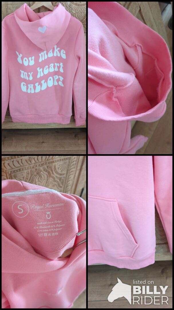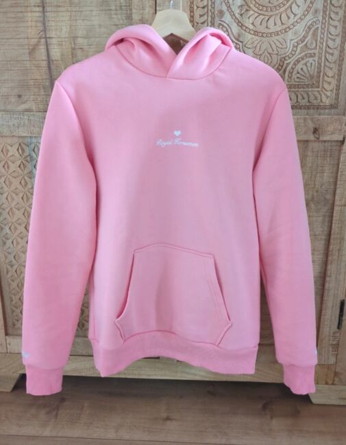 Hoodie von Royal horsemen in rosa, Größe S. Mit Statement Print auf dem Rücken, gestickte Herzen auf Kapuze und Ärmel, Kängurutasche und Kapuze. Neu und ungetragen, lediglich einmal gewaschen im Wäschebeutel mit Feinwaschmittel. Fällt etwas größer aus, passt auch 38. Sehr weiches Innenseite, hochwertig verarbeitet. Ist eine Limited Edition zum Valentinstag, Kollektion 2026. Neupreis 59€